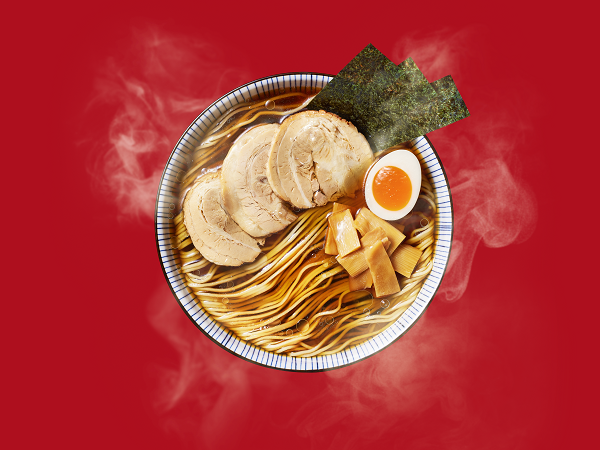 鶏、豚、あさりのトリプルスープをベースに、鶏油100%の豊かで芳香な風味とまろやかさ、4種の醤油をブレンドした贅沢な仕立てで深い旨みを実現。北海道麦を配合した弾力、食感のある麺はスープの乗りがよく、あとを引くおいしさです。