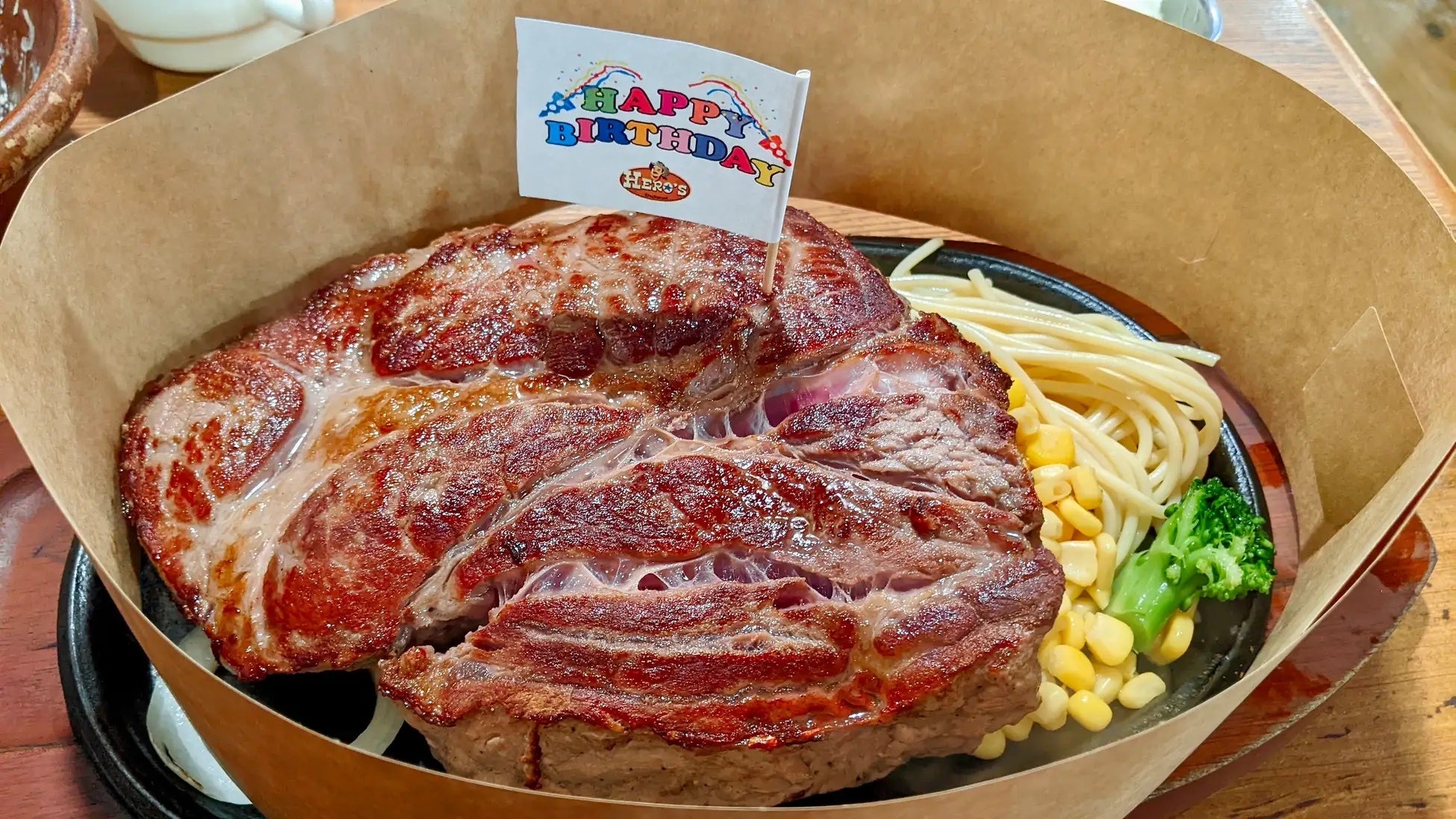 HERO’Sステーキハウスでは誕生日当日に来店すると、どんなお肉(3ポンドステーキ)でもお一つ半額になります。免許証や学生証などの生年月日が確認できるものを提示していただくとご利用いただけます。