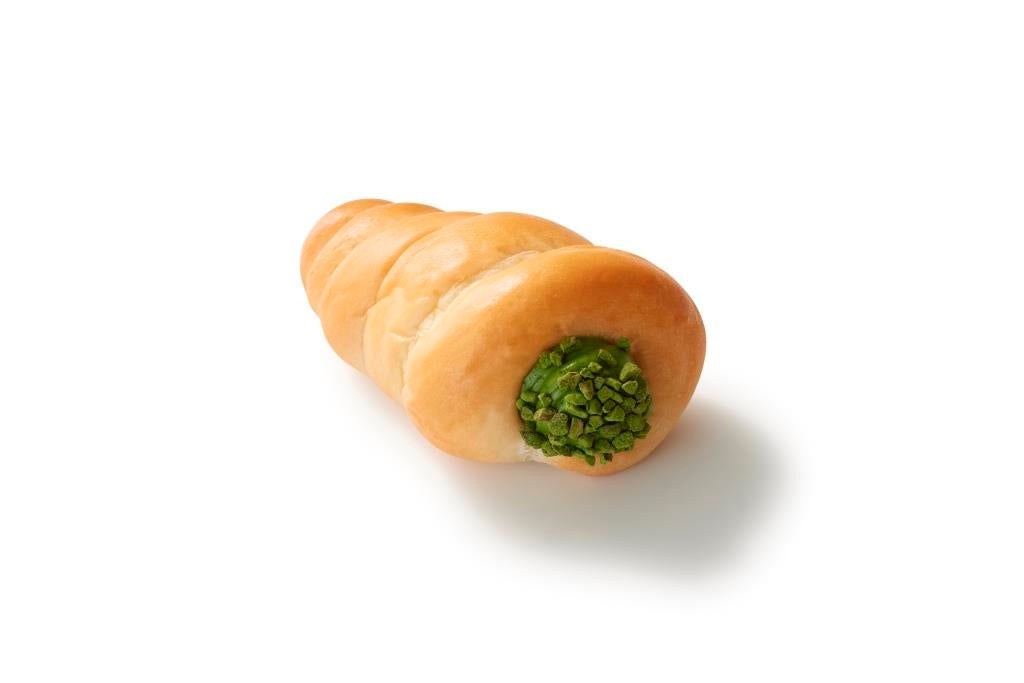 豆乳パン生地のふかふかベッドに包まれているのは、宇治産の抹茶パウダーを練り込んだホワイトチョコレートカスタードクリームです。中に隠れているダークチョコレートバーのほろ苦さと、抹茶の香ばしさをまとったクリームの競演が楽しめる一品。店頭で仕上げています。
