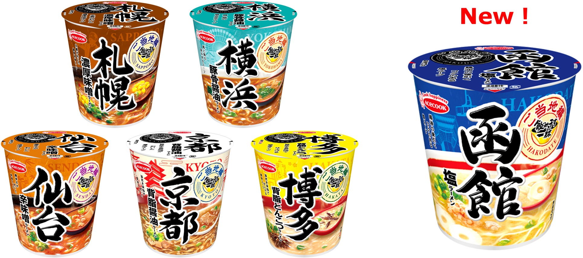 エースコック株式会社(本社:大阪府吹田市 社長:村岡寛)は、2023年8月28日より、「飲み干す一杯 ご当地編 札幌 濃厚味噌ラーメン/横浜 豚骨醤油ラーメン/仙台 辛味噌ラーメン/京都 背脂醤油ラーメン/博多 背脂とんこつラーメン」をリニューアルし、「飲み干す一杯 ご当地編 函館 塩ラーメン」を新発売します。