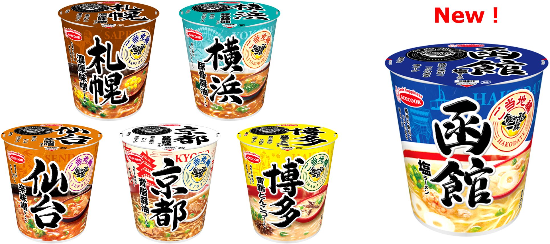 エースコック株式会社(本社:大阪府吹田市 社長:村岡寛)は、2023年8月28日より、「飲み干す一杯 ご当地編 札幌 濃厚味噌ラーメン/横浜 豚骨醤油ラーメン/仙台 辛味噌ラーメン/京都 背脂醤油ラーメン/博多 背脂とんこつラーメン」をリニューアルし、「飲み干す一杯 ご当地編 函館 塩ラーメン」を新発売します。