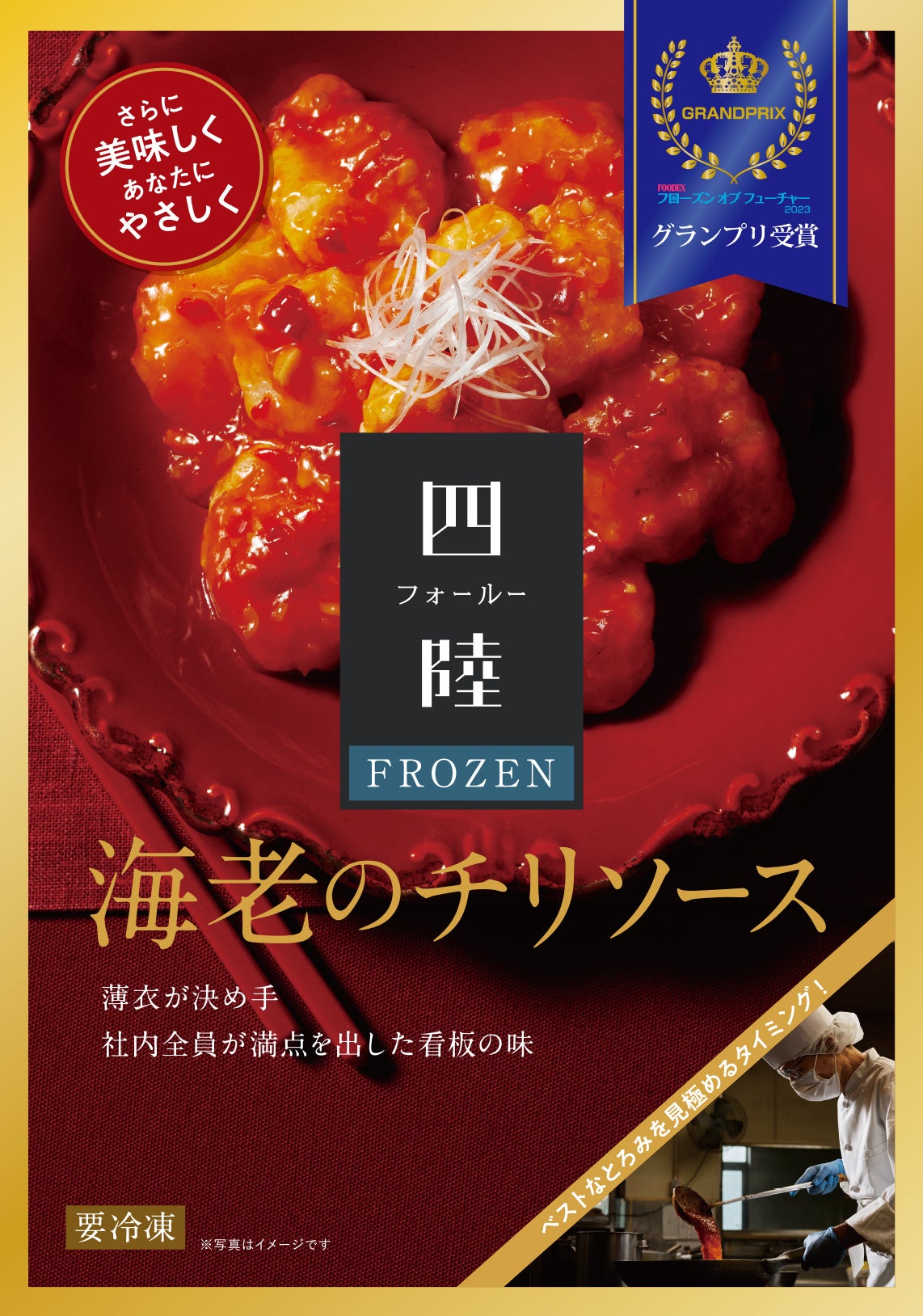 『四陸FROZEN 海⽼のチリソース』は、今年2023年3⽉にリニューアルした商品です。冷凍⾷品としての美味しさではなく、レストランクオリティを⽬指して作り上げたこだわりの⼀品となっています。