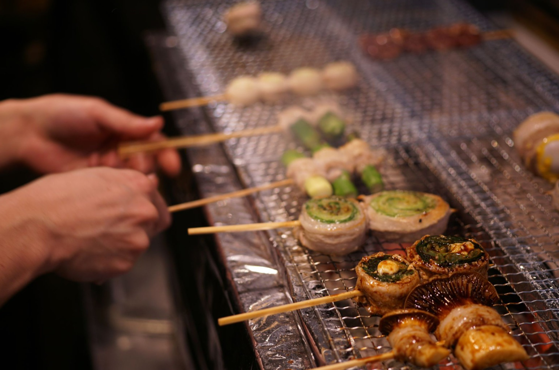 職人が、串焼きを1本1本丁寧に焼いている様子