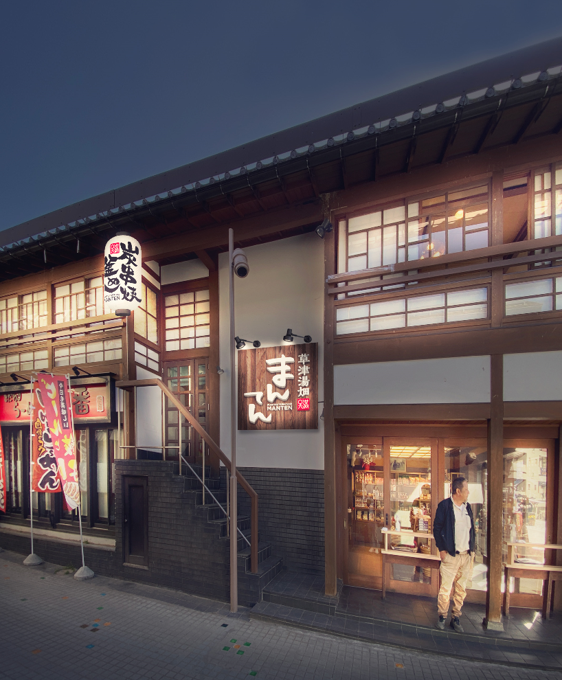 『草津湯畑 まんてん』 は、京都先斗町で国内外のお客様から人気を得ている 『串焼き 満天』 の姉妹店として、群馬県吾妻郡草津町の湯畑前にオープンいたします。自然湧出量日本一の日本三名泉といわれる草津温泉の湯畑周辺には、歴史と風情を感じる温泉街特有の雰囲気が保たれており、その景観・佇まいに溶け込んだ古民家風建物(2階)の店内に入ると、名物の “釜めし” を炊いている厨房が目に留まり 、そのシズルとライブ感に気分も食欲もそそられます。客席は、どこか懐かしいほっこりとした温もりのある落ち着いた雰囲気になっており、湯畑(温泉街)を眺め、温泉旅行を実感しながらゆったりとした時間の中で自慢の料理とお酒などをお楽しみいただけます。