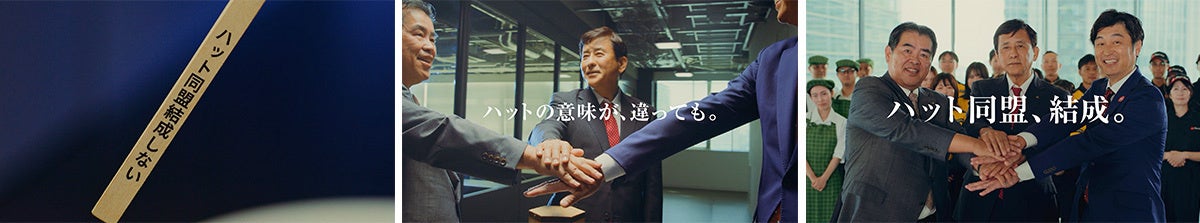 そこへ中村社長、福原社長が手を差し出し、「それでも、ハット同盟結成。」