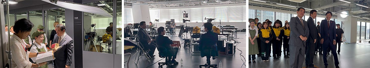 「ハット首脳会談2023」では、各社の社長だけではなく、社員もそれぞれの制服を着用して集結。撮影の待機中、リンガーハットジャパン福原社長がお茶目な一面をみせ、リンガーハット社員が和やかな雰囲気になる場面や、緊張気味のイエローハット堀江社長に、リンガーハットジャパン福原社長が肩を揉んであげるなど、「ハット同盟」らしい?!仲の良い姿が印象的でした。撮影終了後、ピザハット中村社長が社員一人一人に「お疲れ様。ありがとう!」と声をかけるなど、社員を気遣う社長の姿が垣間見える終始和やかな撮影現場となりました。
