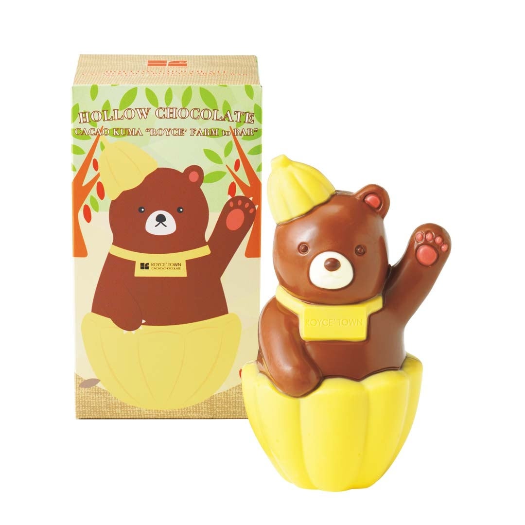 ロイズタウン工場に併設する体験型施設「ロイズカカオ&チョコレートタウン」のキャラクターを、中が空洞の”ホローチョコレート”にしました。カカオポッド(カカオの実)に入った可愛いクマのチョコレートをお土産にどうぞ。