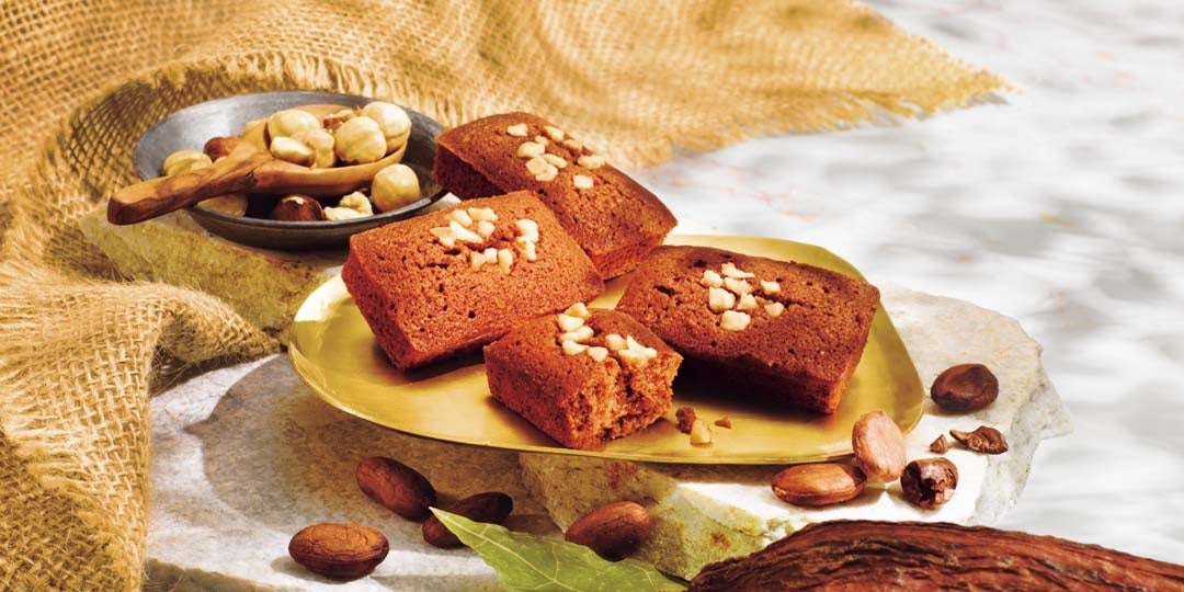 ロイズファームトゥーバーのチョコレートとヘーゼルナッツプードルを練り込んだ生地の表面にヘーゼルナッツをトッピングし焼き上げました。フルーティなカカオの香りとヘーゼルナッツの香ばしさをお楽しみください。