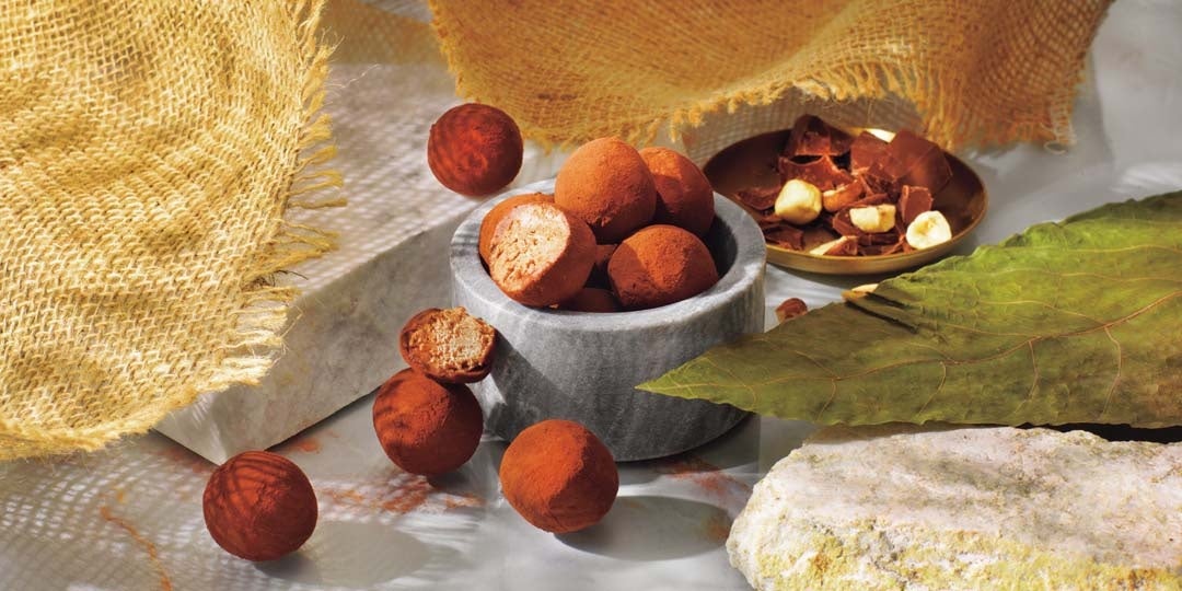 チョコレートにヘーゼルプラリネを合わせたジャンドゥーヤに、さくさくとした食感のフィアンティーヌを混ぜ、洋酒がほんのり香る生チョコレートでコーティング。仕上げにココアパウダーをまぶしました。フルーティな味わいのロイズファームトゥーバーのチョコレートを使用しています。