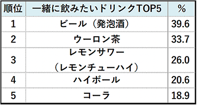 ※提示した選択肢:コーラ、 ジンジャーエール、 ウーロン茶、 お茶(ウーロン茶以外)、 オレンジジュース、 ビール(発泡酒)、 レモンサワー(レモンチューハイ)、 ハイボール、 梅酒、 ワイン、 日本酒、 カクテル、 ウイスキー(バーボン、スコッチ等を含む)、 焼酎・泡盛、当てはまるものはない、その他