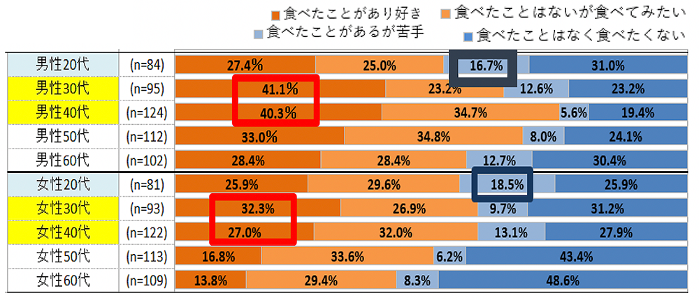 ※「食べたことがない人もイメージでお答えください」と注釈を付けて聴取