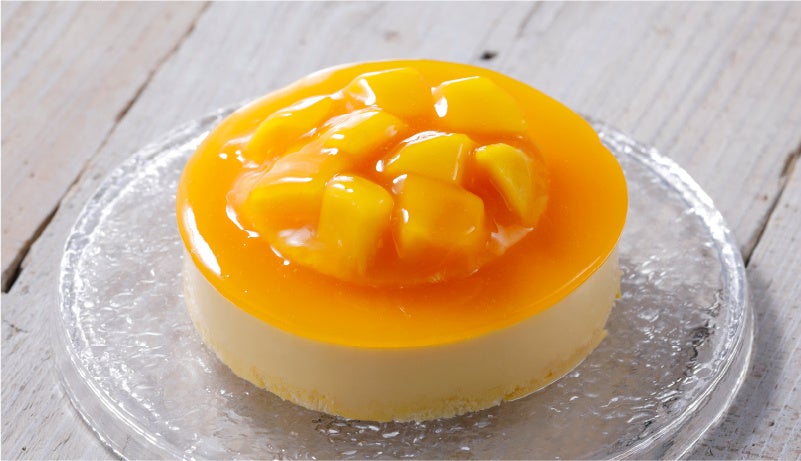 ムース、グラサージュ、トッピングなど、随所にマンゴーを使用し、夏らしいトロピカルな味わいに仕上げました。柑橘の爽やかでなめらかなムースのほのかな酸味と、中にしのばせたココナッツプリンのまろやかな甘みがジューシーで芳醇なマンゴーの甘みをより引き立たせます。