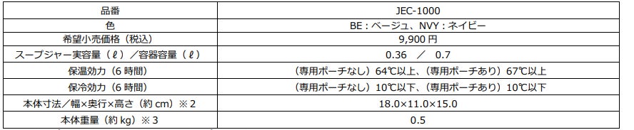 『サーモス ヌードルコンテナー(JEC-1000)』 仕様一覧