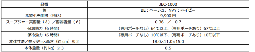『サーモス ヌードルコンテナー(JEC-1000)』 仕様一覧
