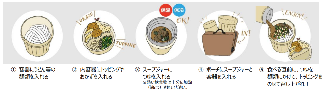 お弁当に“麺”を持ち運ぶことができる『サーモス ヌードルコンテナー(JEC-1000)』は、麺好きな方に楽しんでいただくだけではなく、日々のお弁当のマンネリに悩んでいる方や、手間なく簡単にお弁当の準備をしたい方におすすめのアイテムです。