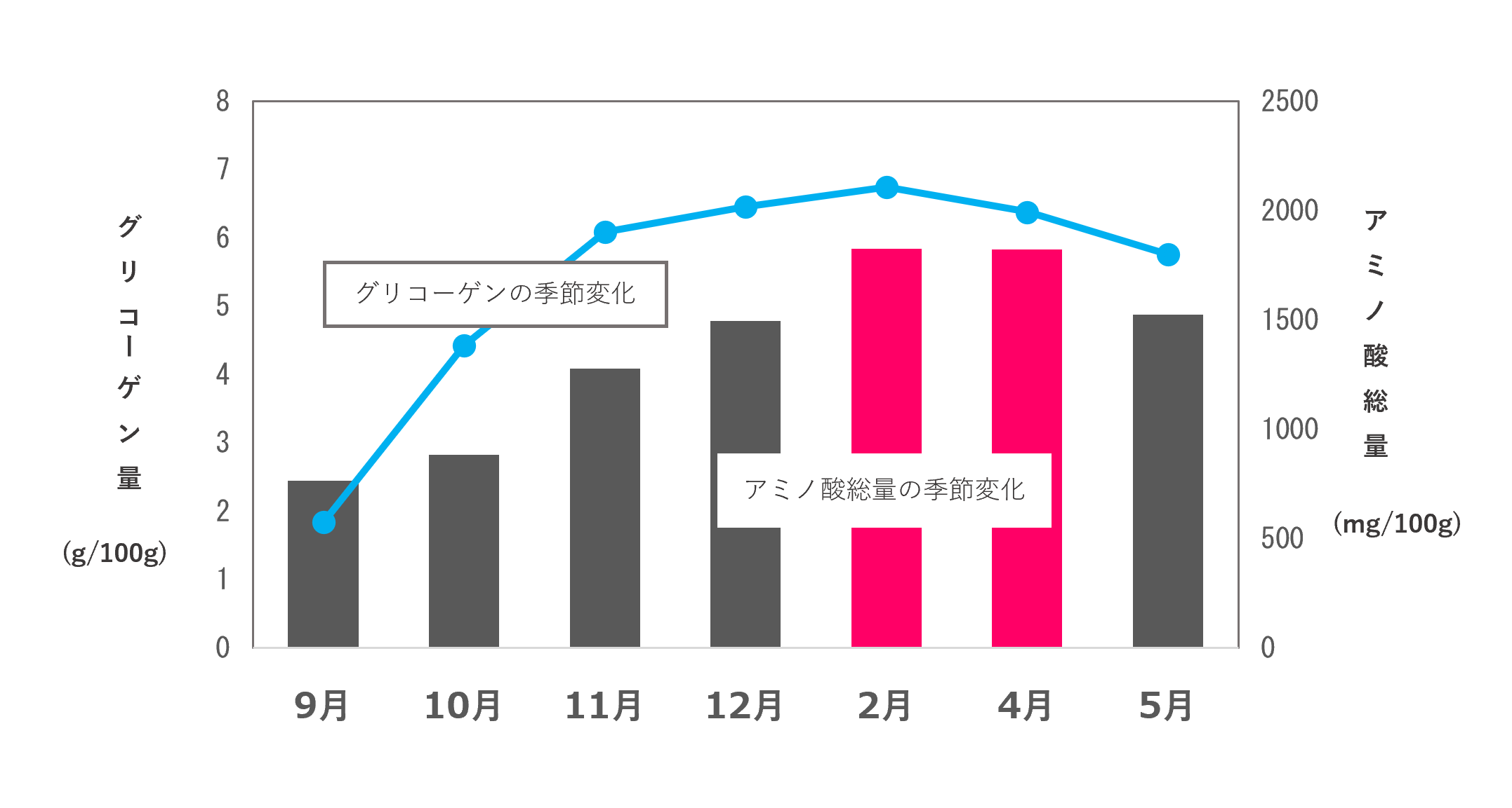 うまみ成分グリコーゲンとアミノ酸量の変化