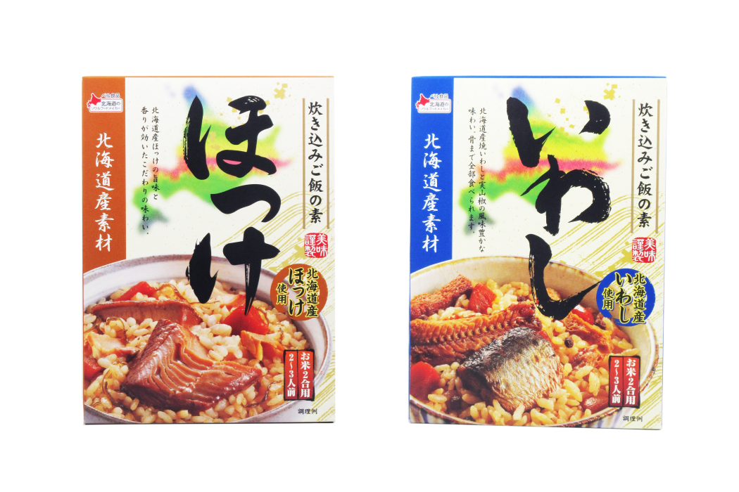 いつもと同じ水加減のお米に加えて、一緒に炊くだけで北海道産の海鮮炊き込みご飯が味わえるレトルト食品、北海道産素材炊き込みご飯の素に『ほっけ』と『いわし』が仲間入り。