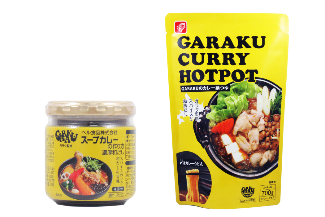 2007年のオープン以来、スープカレーの本場札幌で常にトップクラスの人気を誇り、連日行列が絶えない名店「スープカレーGARAKU」(以下GARAKU)が監修した「ガラク スープカレーの作り方 濃厚和だし」と「GARAKUのカレー鍋つゆ」がベル食品から登場します。