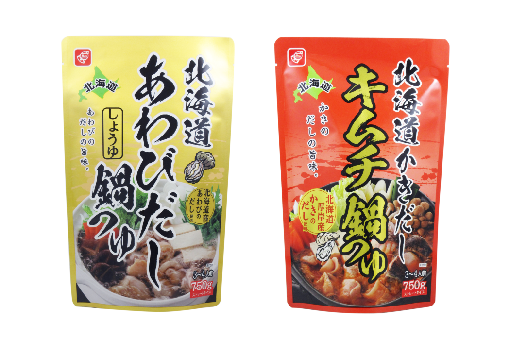 北海道らしい高級食材の出汁で本格的な美味しいお鍋が手軽にご家庭で食べられると、寒い季節に好評のベル食品の北海道鍋つゆシリーズに、「北海道あわびだししょうゆ鍋つゆ」と「北海道かきだしキムチ鍋つゆ」の2つの味が新登場。