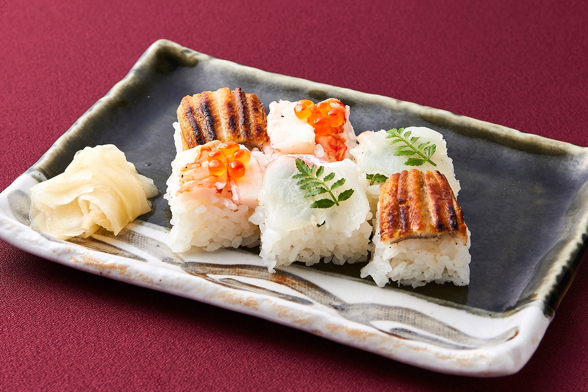 大阪寿司の代表格である箱寿司は、芝居見物の幕間弁当や手土産として古くから大阪で親しまれてきたお寿司。大阪産(もん)に認定されている「王醤」というお醤油でお召し上がりください。