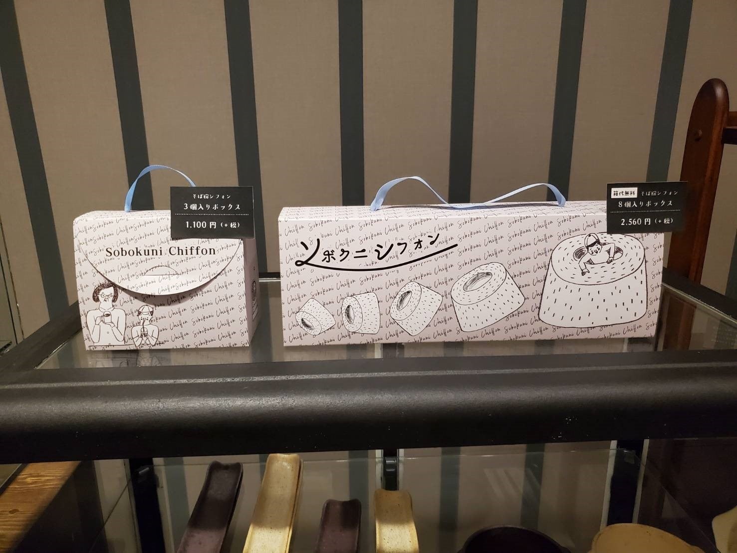 店名のソボクニシフォンは、食品添加物を一切使用せず素朴な材料で作り続けようという思いの「素朴に」と、お年を召した方から小さなお子さままで多くの方に安心して召し上がってほしいとの気持ちからおばあちゃんと孫をモチーフにした「祖母(そぼ)+僕(ぼく)」のふたつの意味を持たせています。