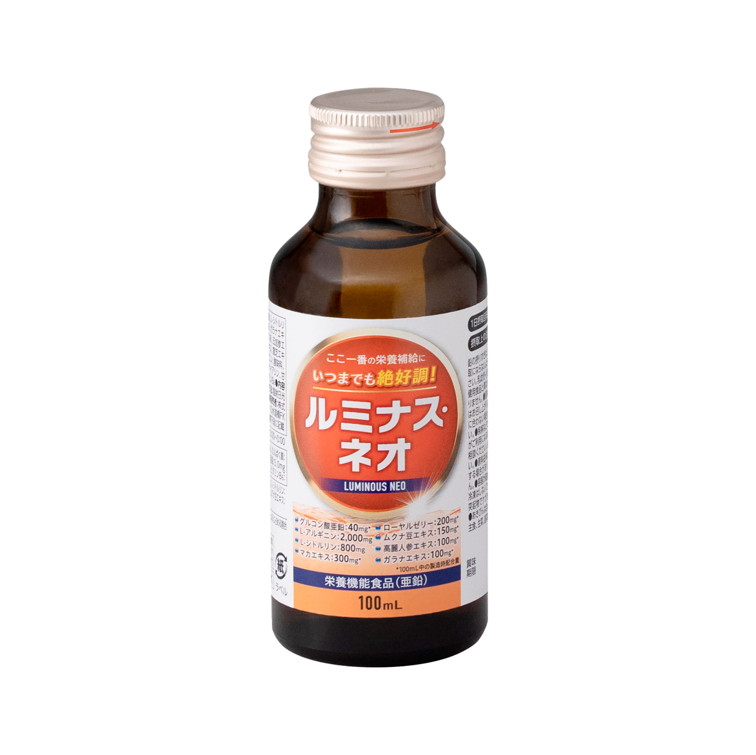 ルミナス・ネオは、滋養強壮イメージがある成分を多く配合し、「24時間戦えますか」の時代を生き抜いた団塊の世代をメインターゲットとした、「第2の青春煌めきサポート」元気・活力増強ドリンクです。