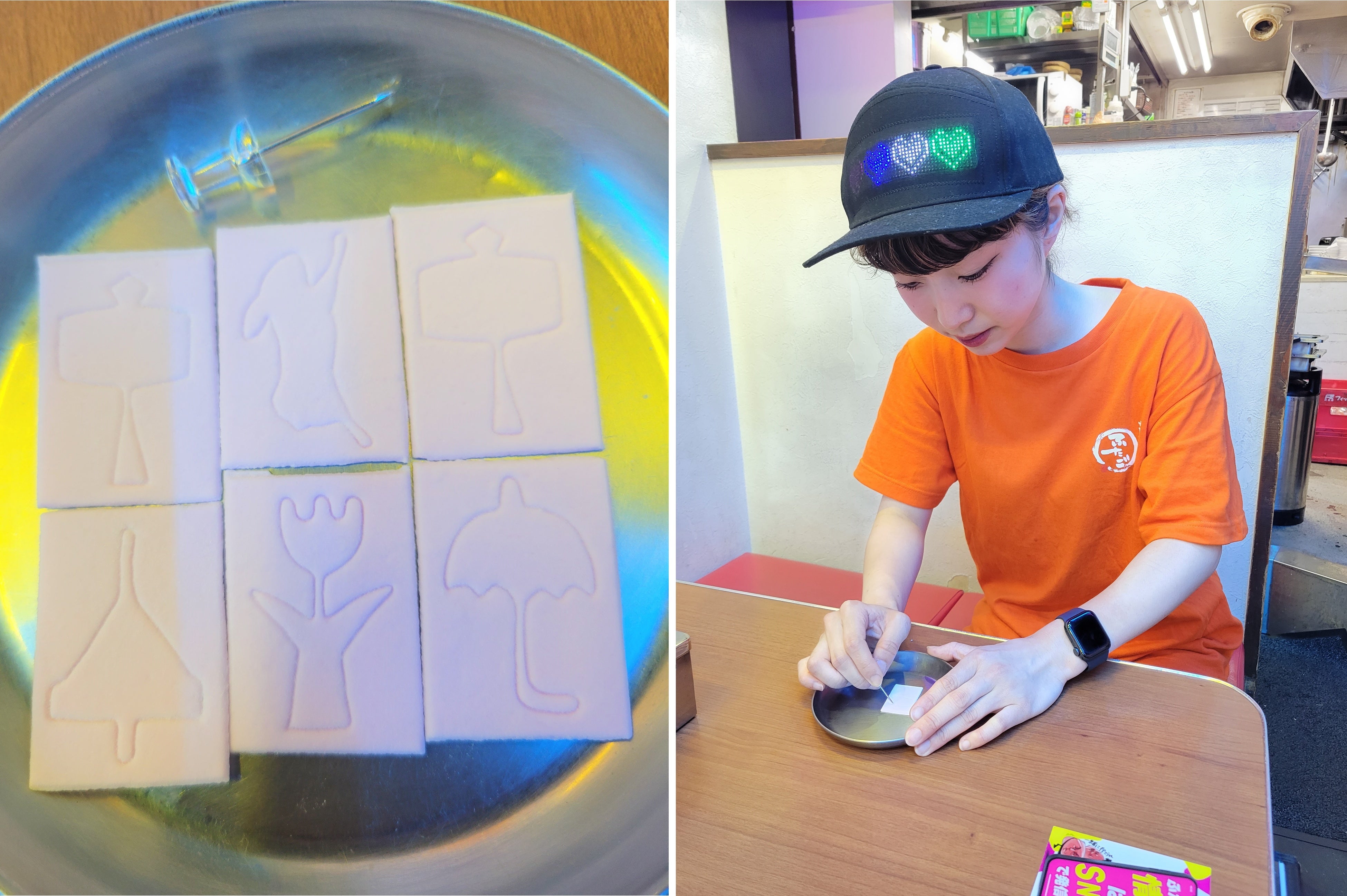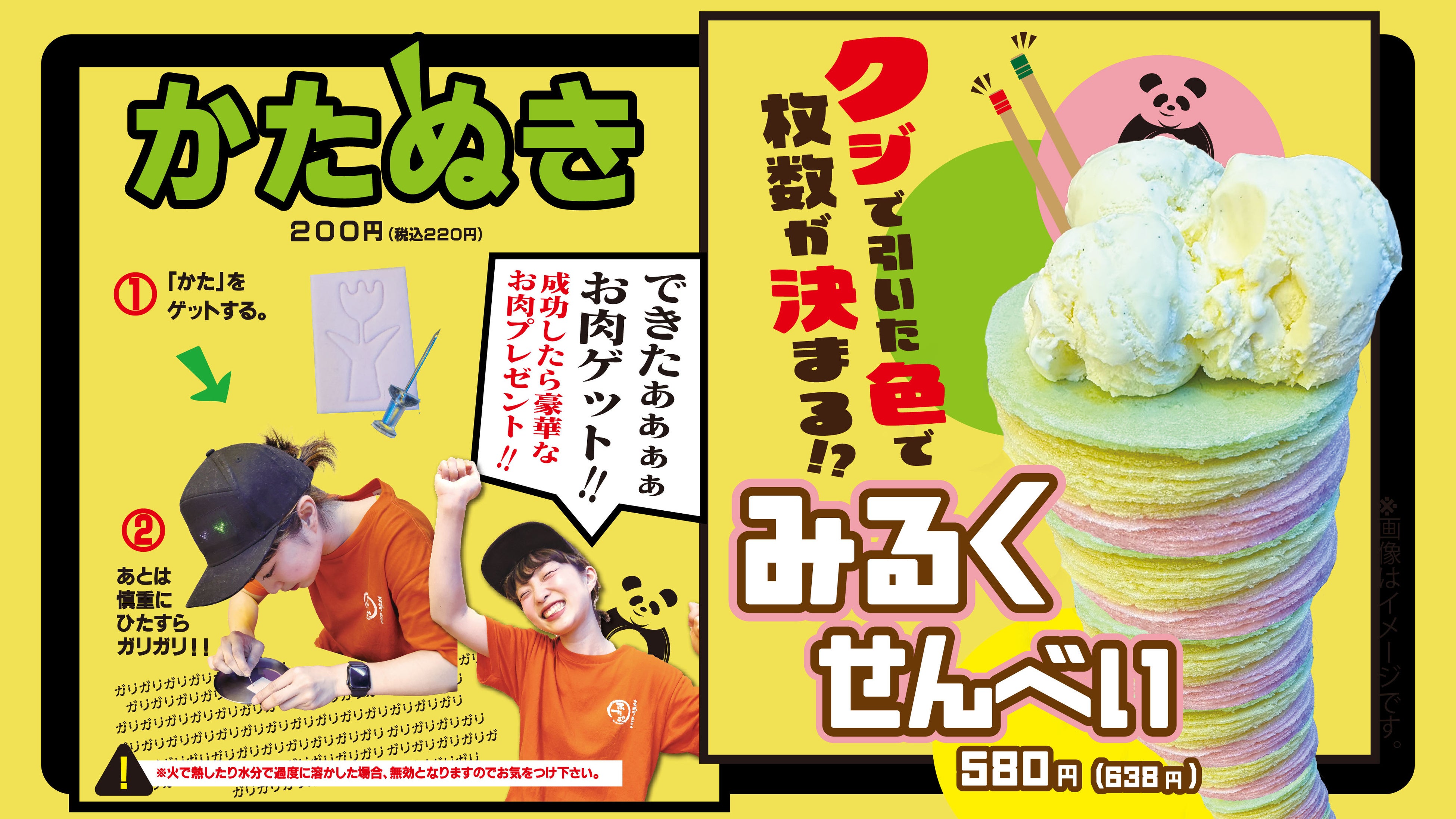 また、ネオ焼肉ふたごでは“お通し”として「線香花火」をプレゼントしたり、「光る綿あめ」などの夏祭りをイメージしたサービスも展開しておりますが、昔懐かしの夏祭りの定番である「型抜き」や、「ミルクせんべい」の提供も開始します。