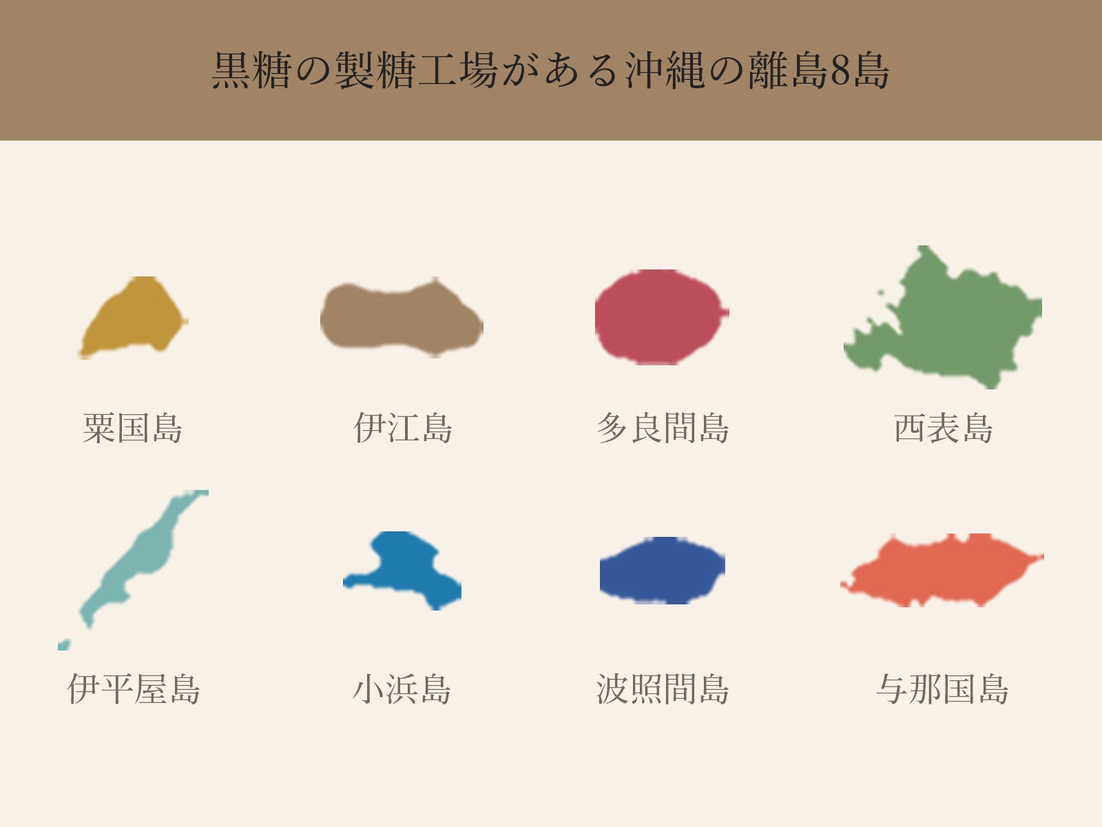 ※離島8島:沖縄県内で、さとうきびから黒糖をつくる製糖工場がある離島(粟国島、伊江島、伊平屋島、西表島、小浜島、多良間島、波照間島、与那国島)