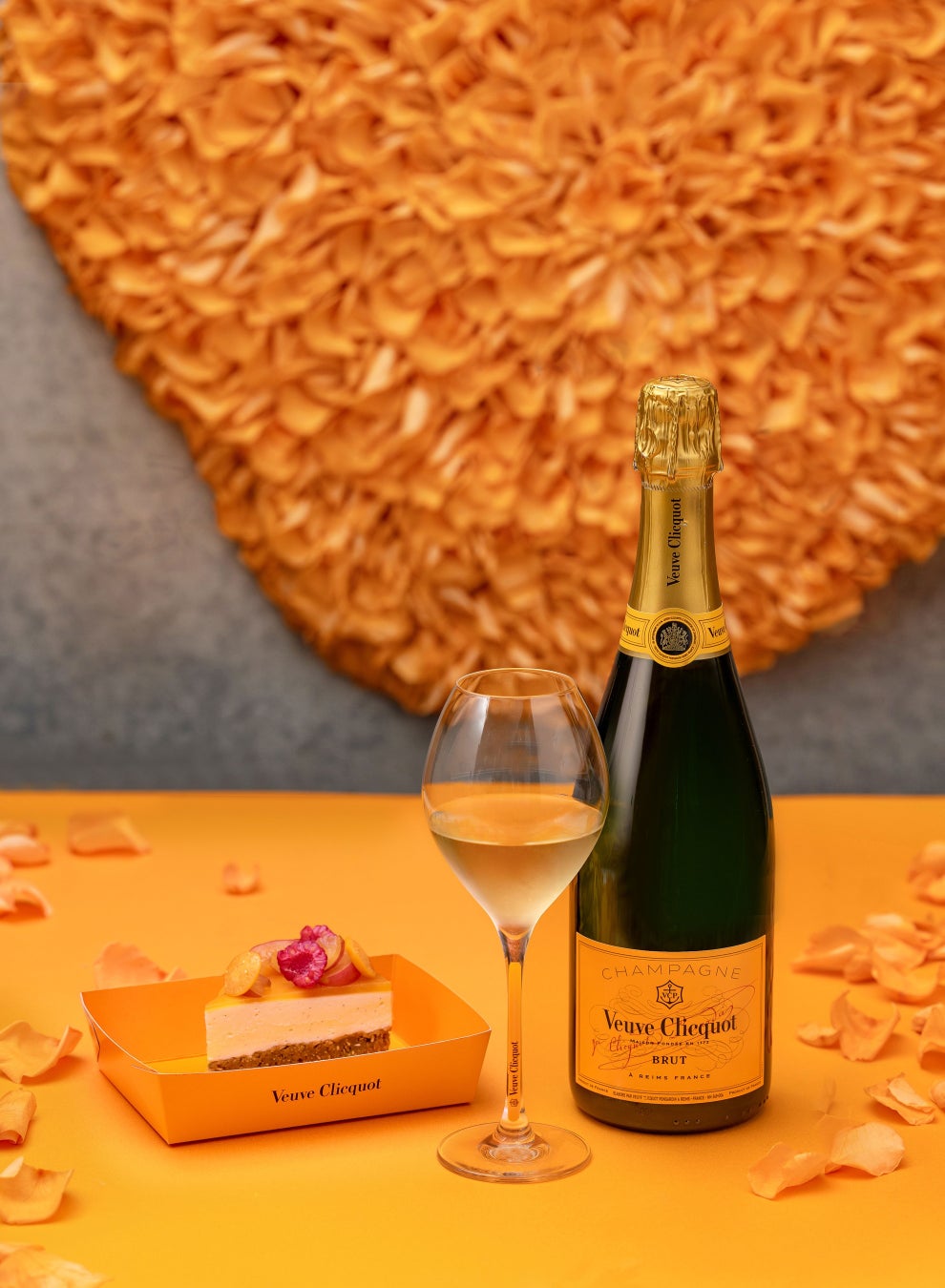 ヴーヴ・クリコのイエローカラーのフラワーアートで彩られた空間で愉しむ、華やかなペアリング体験