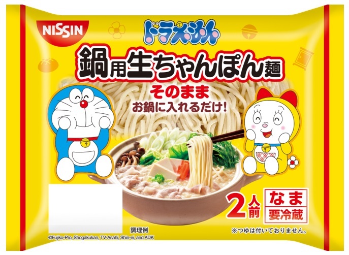 日清食品チルド株式会社 (社長:伊地知 稔彦) は、「ドラえもん 鍋用生ちゃんぽん麺 2人前」を全国 (北海道を除く) で9月1日(金)に新発売します。