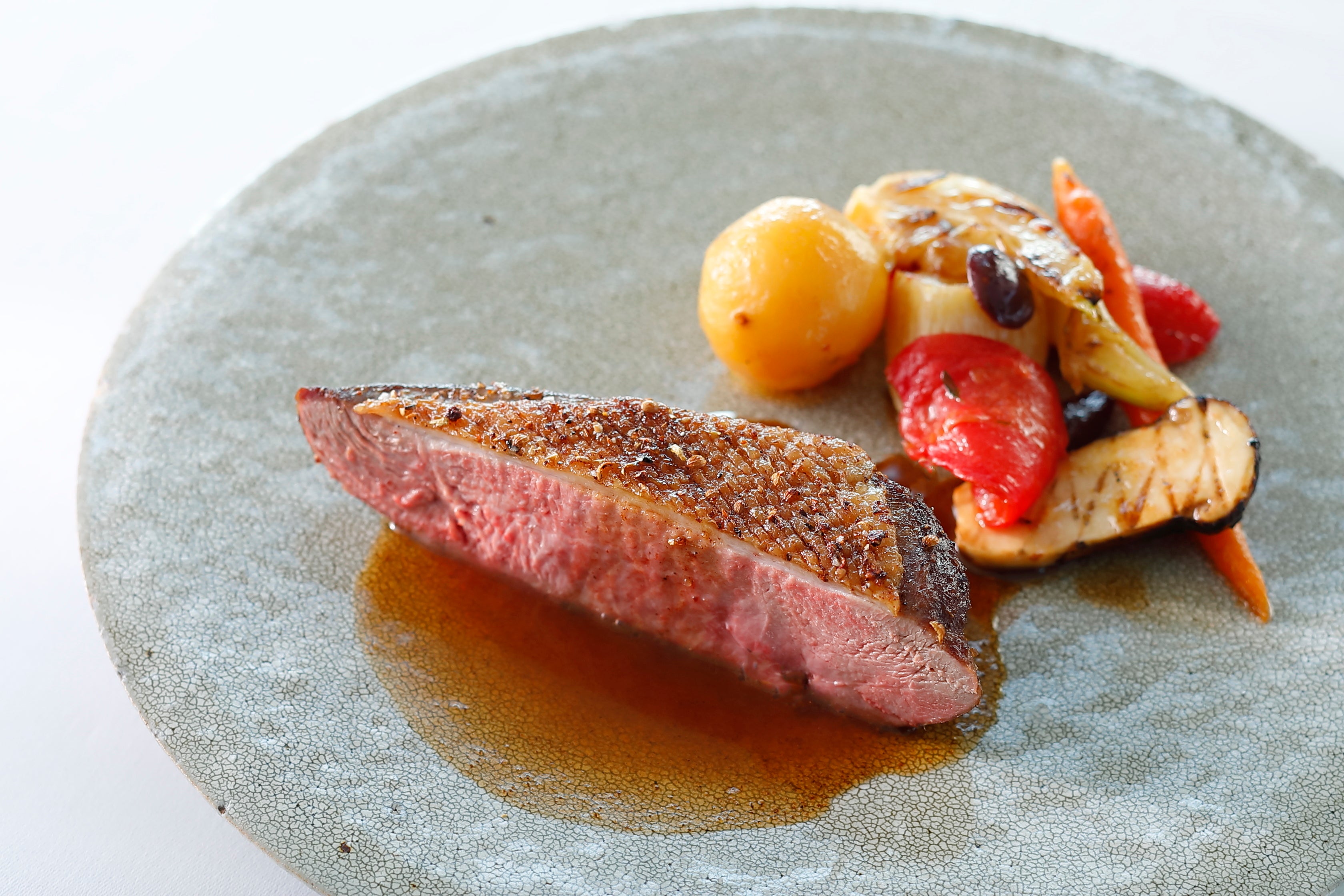 鴨のロースト オリーブとスパイス 松茸のグリル