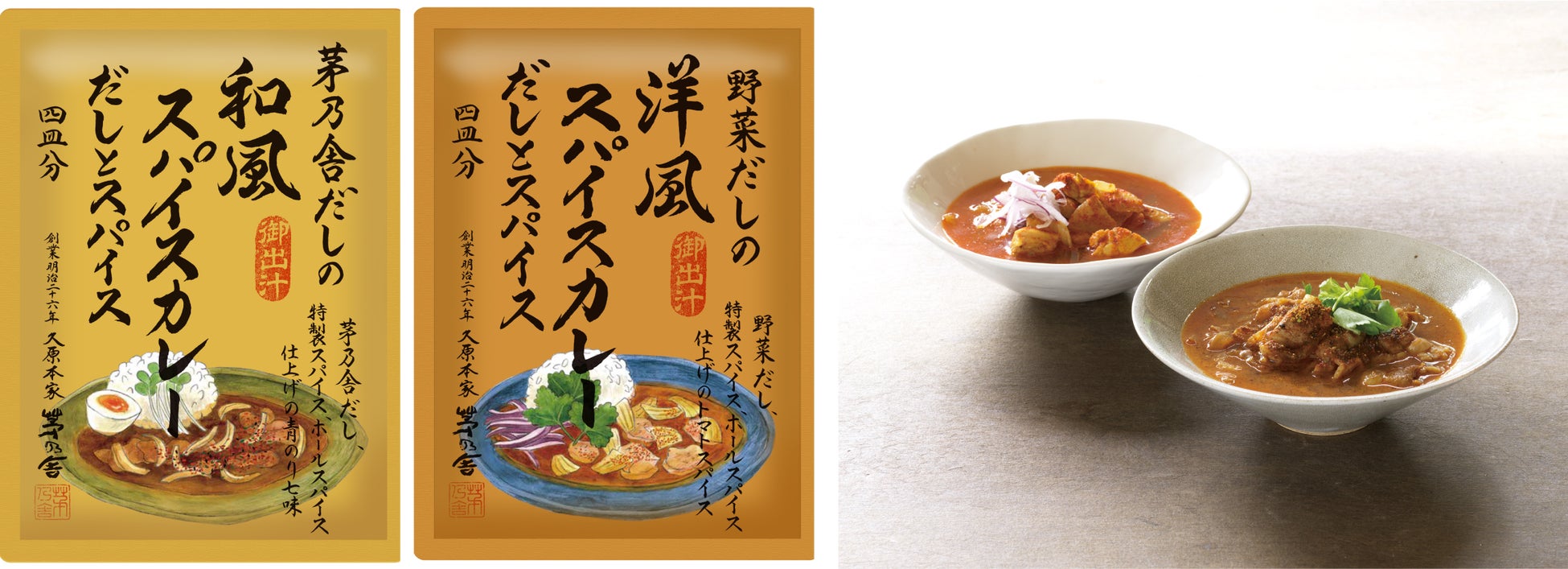 今回くばラボで開催される「カレーとうまみのヒミツ展」に先駆け、茅乃舎ではだしのうまみとスパイスの掛け合わせが新しい、「茅乃舎だしの和風スパイスカレー だしとスパイス」「野菜だしの洋風スパイスカレー だしとスパイス」を、8月2日より全国の茅乃舎店舗および通販サイトにて発売しております。