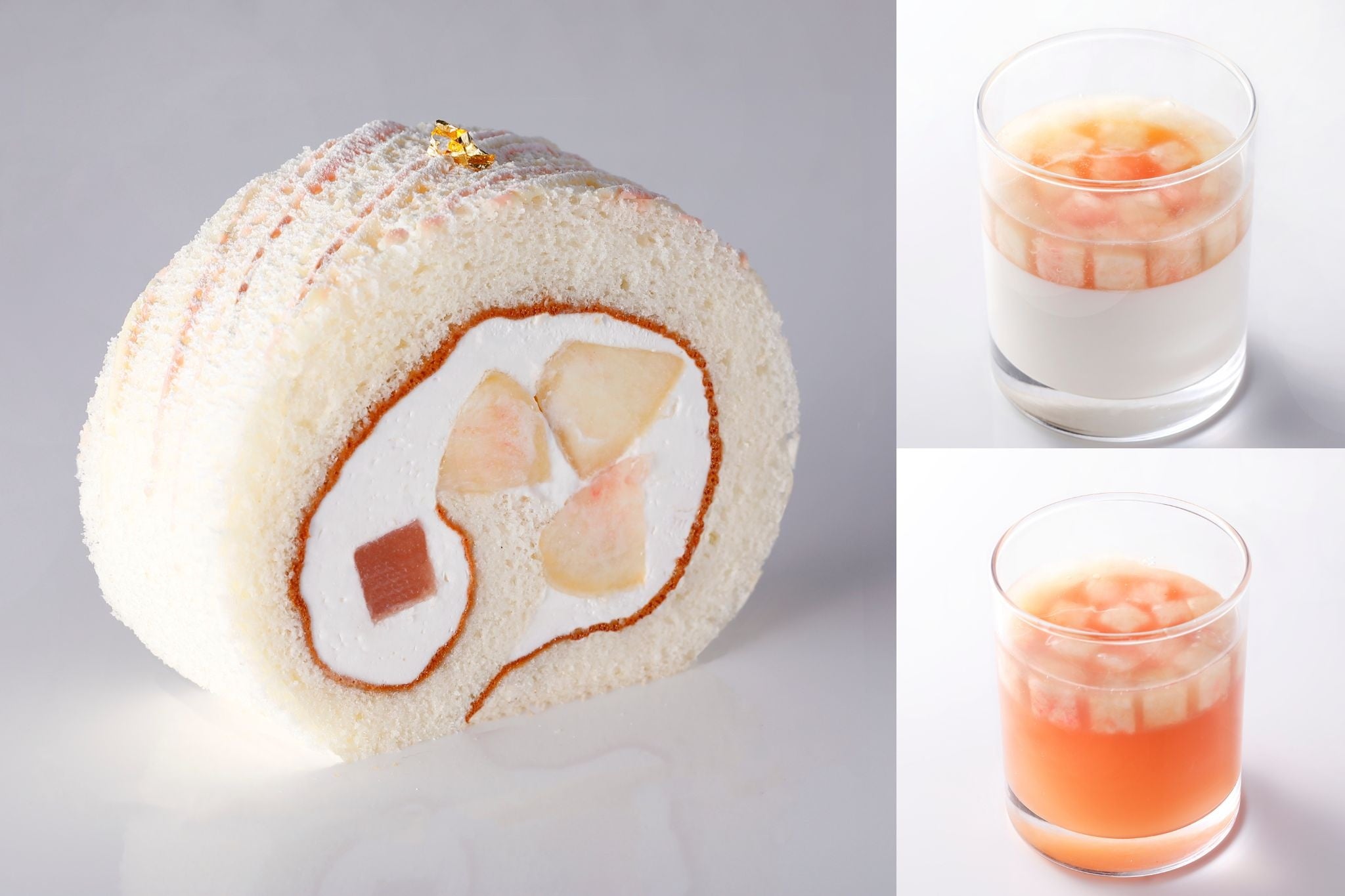 玄米を食べて育った鶏による「玄米卵」を使用したロール生地に、九州大牟田産生クリームとピーチ寒天、桃の果肉をふんわりと包み込み、桃の優しい甘みと酸味を感じられる『ピーチロール』、岩手県産の岩泉(いわいずみ)ヨーグルトを使用したゼリーに、桃の果肉とピーチゼリーをトッピングした爽やかな『岩泉ヨーグルトゼリー(ピーチ)』、国産桃の果肉とピーチ葛ソースをトッピングし、フランボワーズの酸味を隠し味に、桃の甘さを引き立たせた『ピーチゼリー』といったテイクアウトスイーツも登場中。