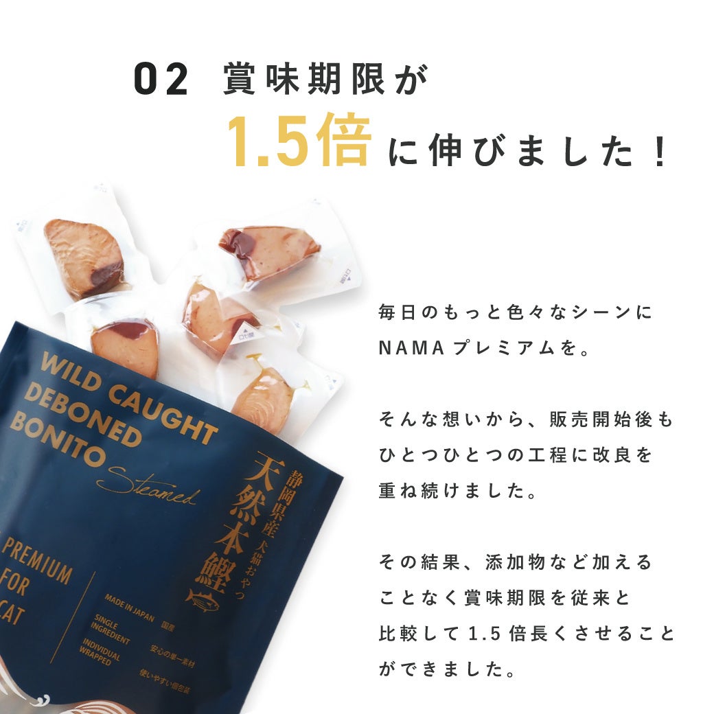 NAMAプレミアムは、国産本鰹を100%使用した犬猫向けのおやつ。