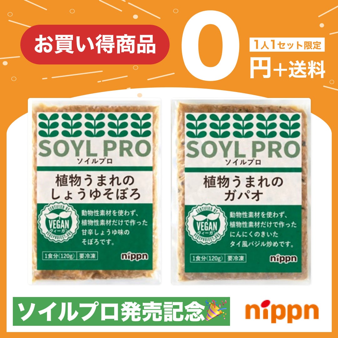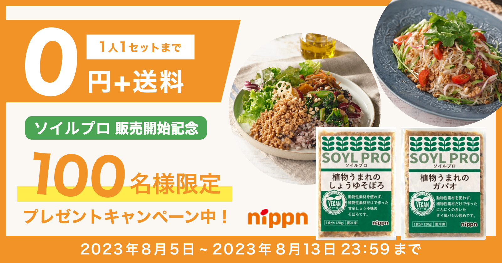 発売を記念し、ソイルプロ「しょうゆそぼろ」「ガパオ」の2種類を、1人1セット・100名限定プレゼントキャンペーンを2023年8月5日(土)〜8月13日(日)に実施いたします。