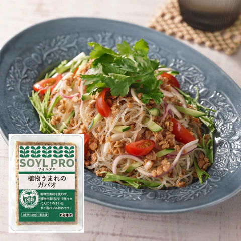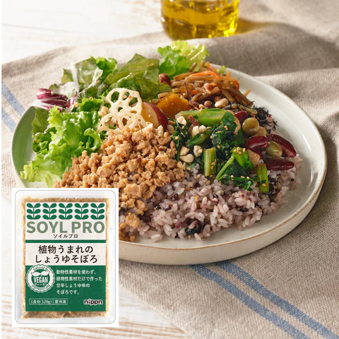 SOYL PRO(ソイルプロ)は、大豆をベースに豆腐の加工技術を応用して作られた、新しい大豆ミート商品です。NPO法人ベジプロジェクトジャパンのヴィーガン認証も取得しています。