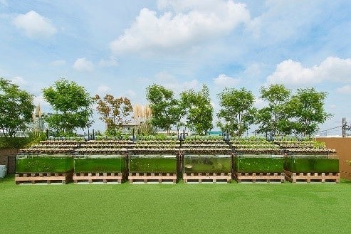 水耕栽培と水産養殖のシステムを合わせ持つ、環境にやさしい農業として世界でも注目されている「アクアポニックス栽培」を導入した循環型の屋上ファームです。農福(農業×福祉)+アクアポニックス+AGRIKOの取組みはSDGs17項目全てと親和性があります。