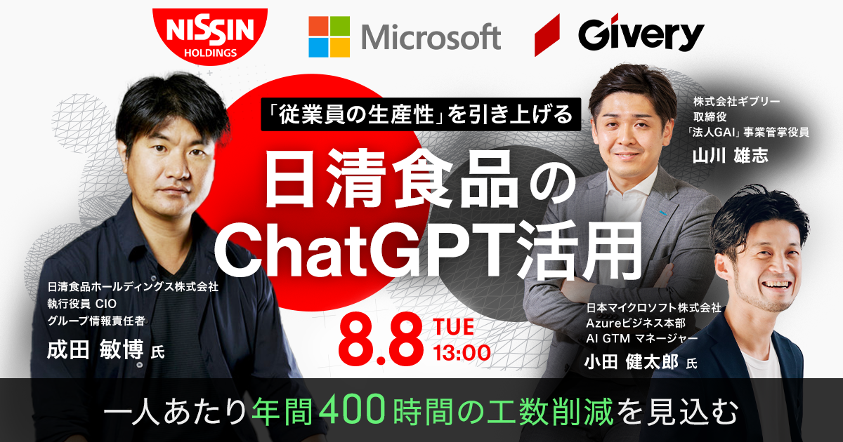 タイトル:1人当たり400時間/年の工数削減を実現した日清食品のChatGPT活用の裏側公開