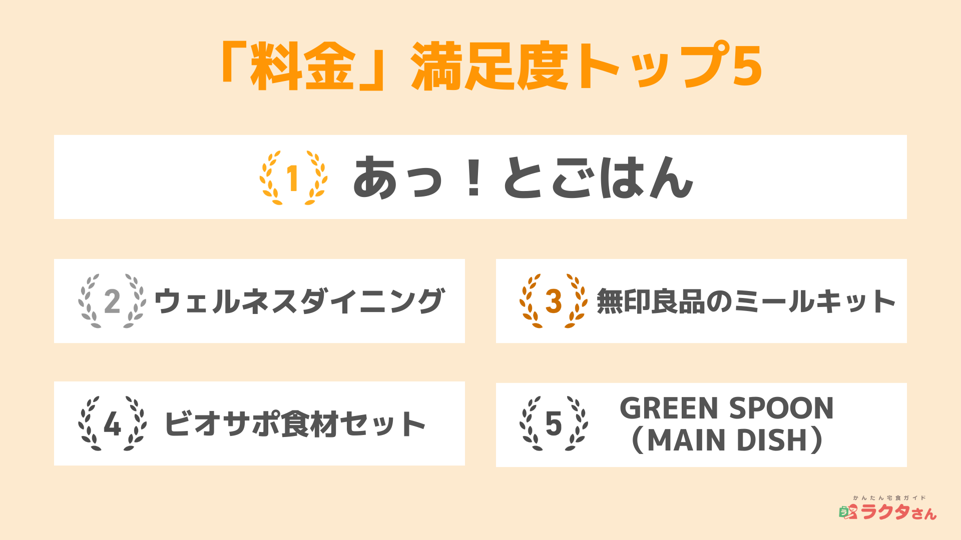 これらのことから、満足できる料金で、健康的な料理を定期的に注文できるという点で、料金に関して満足度を感じている方が多いのかもしれません。