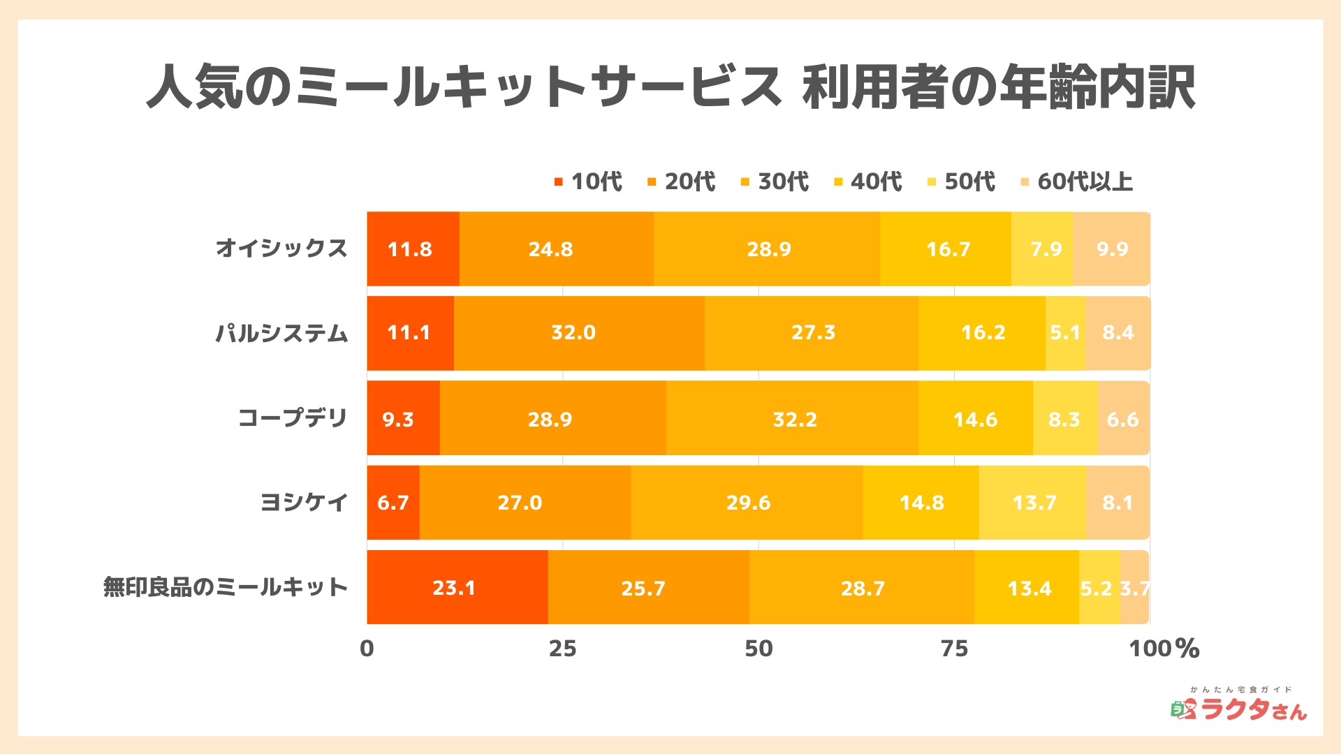 40代以上の利用者が多いのは「オイシックス」と「ヨシケイ」でした。
