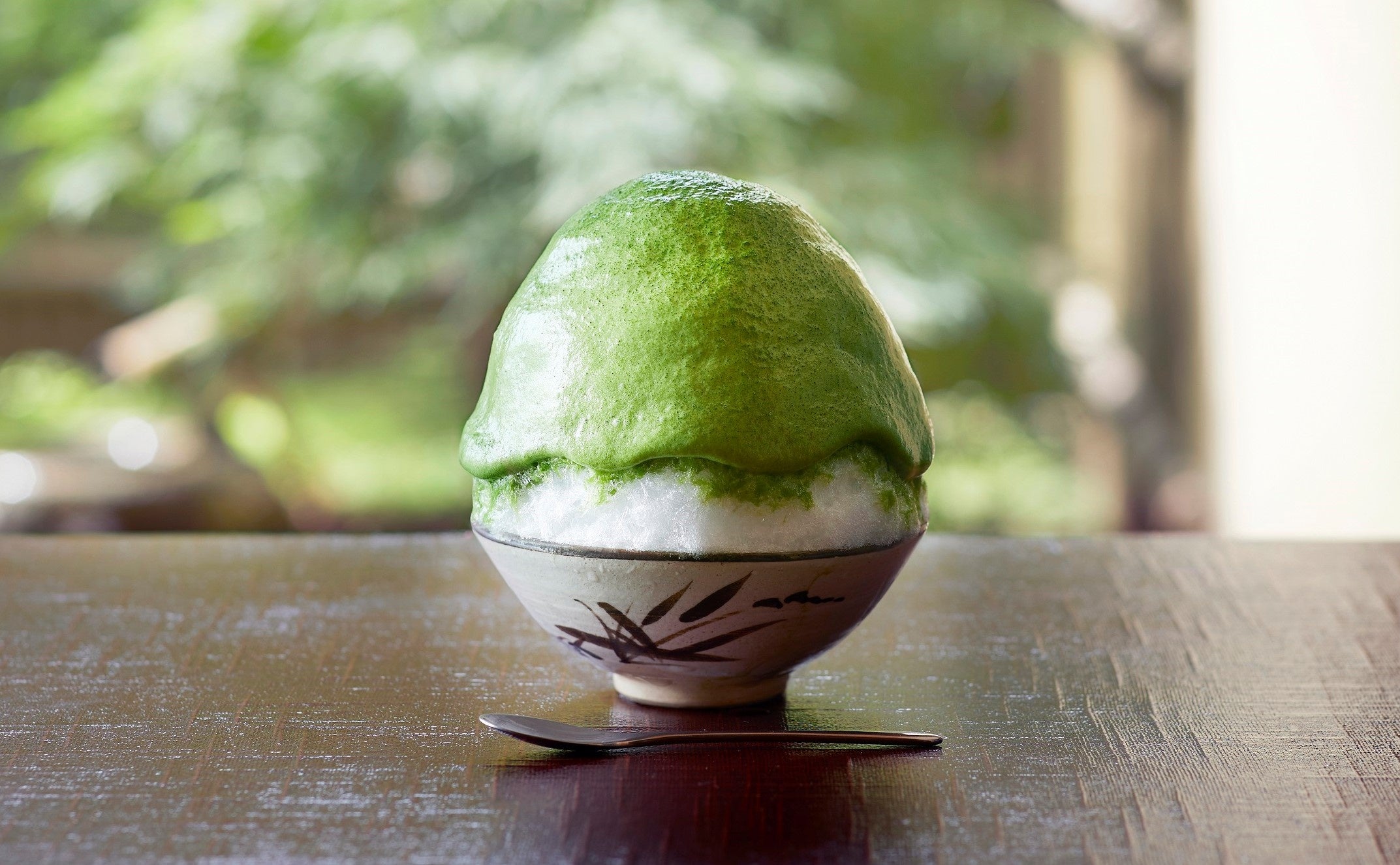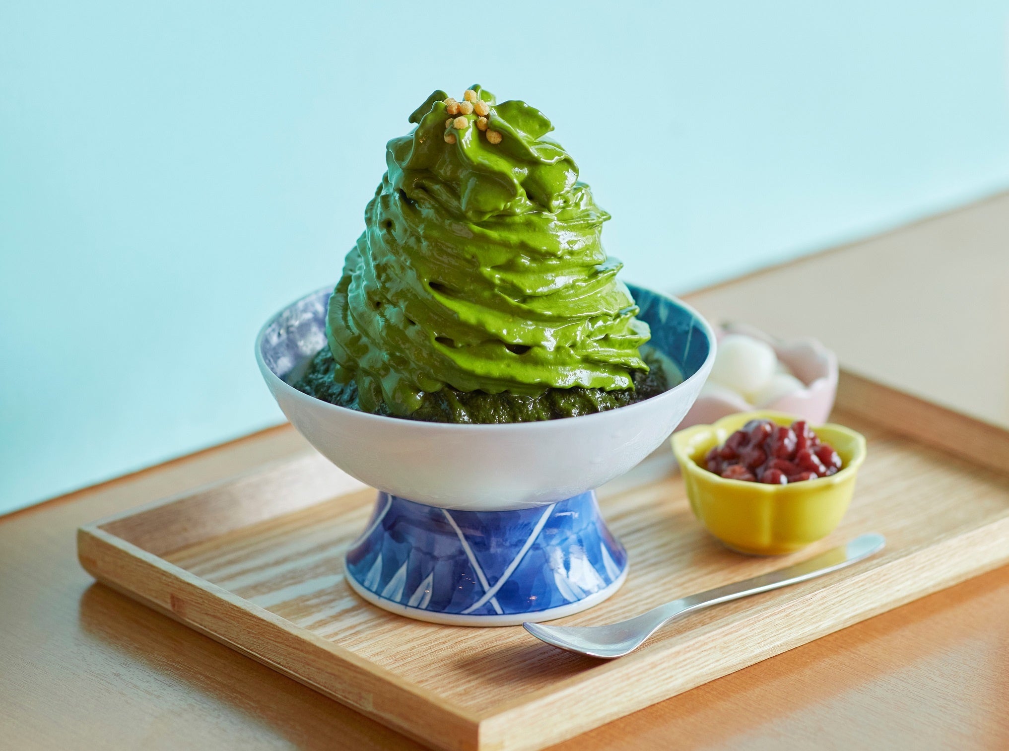 三十三間堂のほど近く。和モダンの風情を感じる建物が、1945年創業の茶専門問屋「清水一芳園」が手掛けるカフェです。茶専門問屋らしく多彩な抹茶スイーツが並ぶなか、ひと際、目をひくのが今回百貨店初出品となる“抹茶エスプーマ雪氷”。茶臼でていねいに挽いた抹茶を使った印象的なエスプーマは、温かいお茶を飲む時と同じように口の中に抹茶の豊かな風味が広がります。また会場ではサービスで練乳をご用意。お好みの甘さでお召し上がりいただけます。濃厚かつお茶の香りと旨みを堪能できるかき氷。和の情緒たっぷりのおいしさにご期待ください。