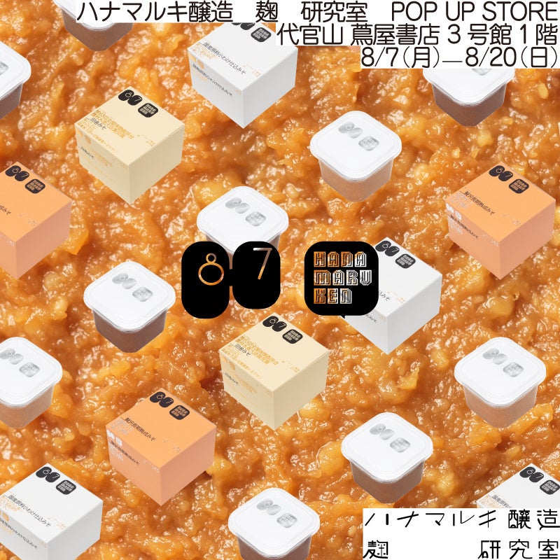 1918年の創業以来105年にわたり、味噌を中心に「麹」をベースとした商品を開発・展開し、「おみそならハナマルキ」のキャッチコピーで親しまれてきたハナマルキ。「麹」「発酵」を活かした商品展開には、さらなる可能性があると見て、『「麹」の可能性を追求し、「麹」の未来を創る』というコンセプトの新ブランド「ハナマルキ醸造 麹 研究室」(略称「HANAMARUKEN(ハナマルケン)」)を立ち上げ、8月7日(月)10時より、直営店(長野県伊那市)と、公式ECサイト(www.hanamaruken.jp) で販売をスタートします。代官山 蔦屋書店での期間限定販売は、直営店と公式ECサイト以外では唯一の販売となります。都内で直接手に取っていただけるのは代官山 蔦屋書店のみとなりますので、ぜひお越しください。