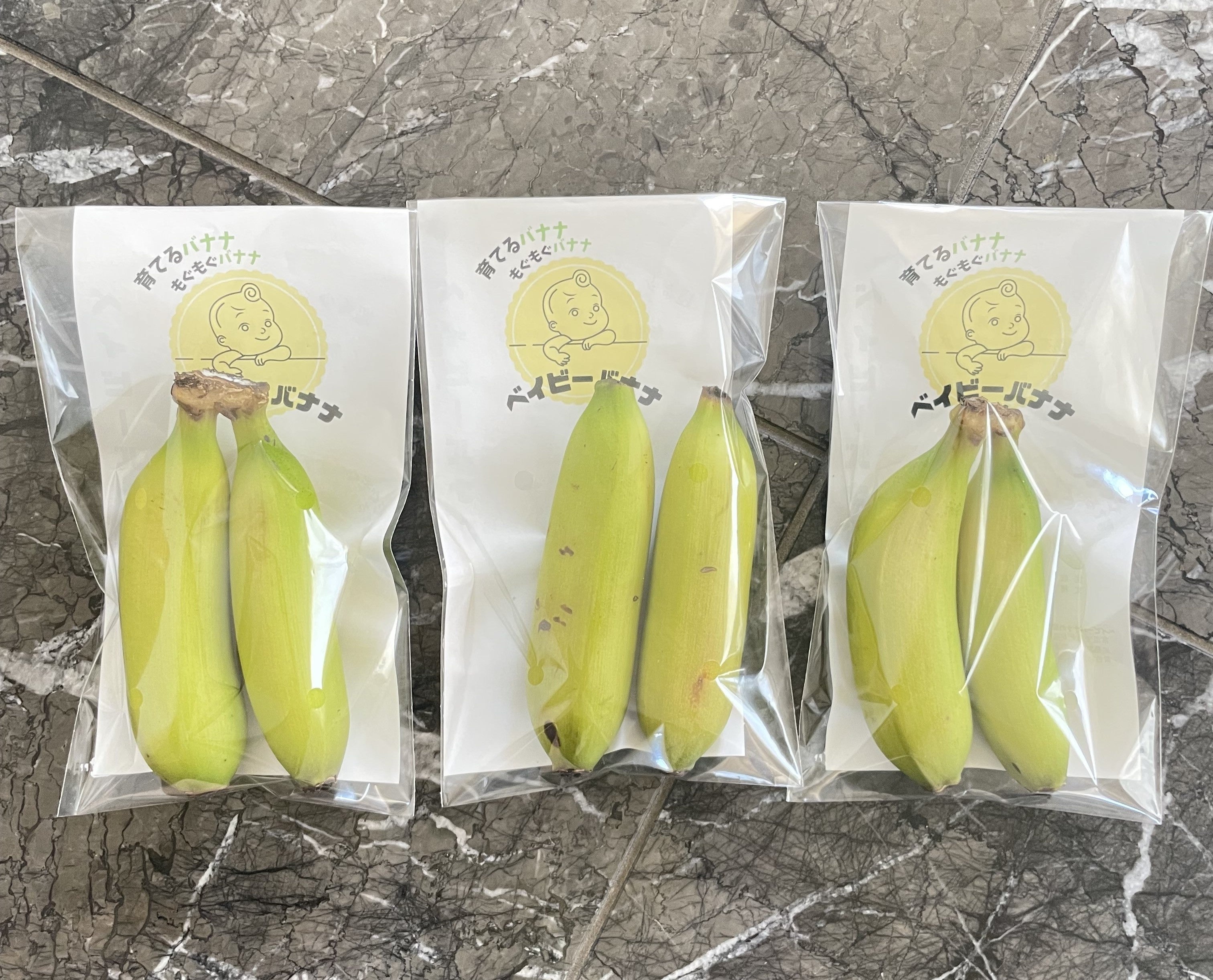 愛知県豊橋市で生産された「ベイビーバナナ」は日本で作出された全長13センチ前後の手のひらサイズでコロンと可愛い品種はベビーナです。