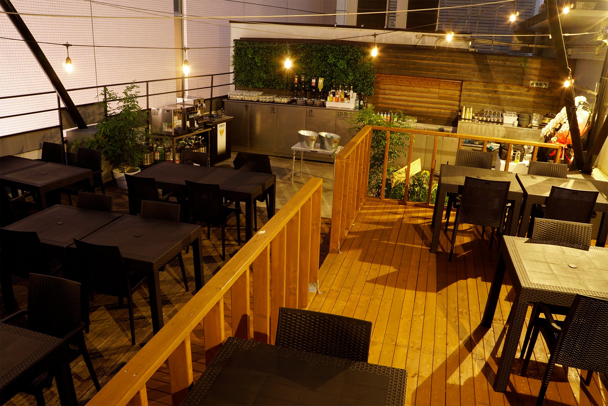 2023年8月1日よりオープンした「TRS plus」は、木・緑・コンクリートで統一された開放的なテラス席で、手づかみで食べるコースを堪能頂ける圧倒的解放感が味わえる大人のビアガーデン。