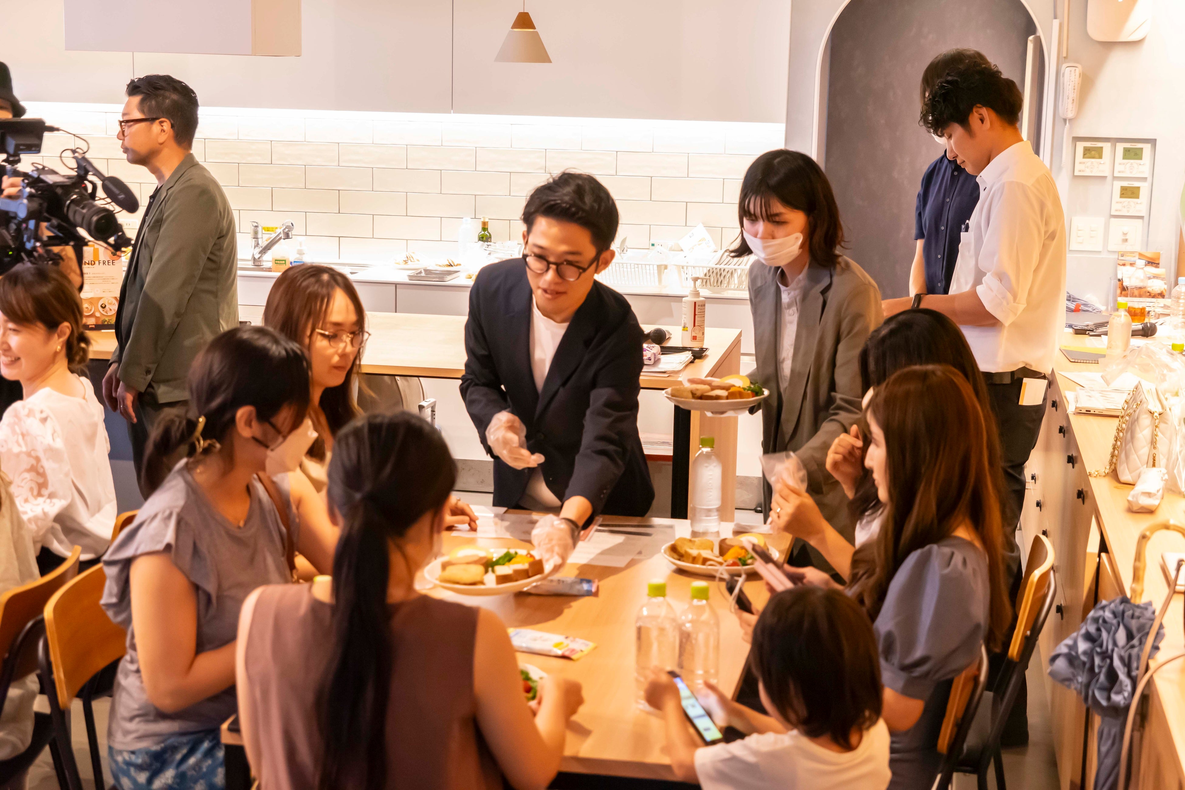 『カベのないレストラン』限定のBEYOND FREE特別プレートには、イベント当日に発売を迎えたアレルギー特定原材料等28品目不使用の玄米ブレッドや、90%以上の方がおいしい!※と評価した卵・乳を使わないロールケーキ、大豆ミートで作ったプラントベースのライスバーガーなど、『カベのないレストラン』の理念を反映した彩り鮮やかな人気メニューがずらりとラインナップ。「いただきます」の案内が入るまで、提供された料理を被写体にしたプチ撮影会が始まるなど“映え”の点でも好感触でした。