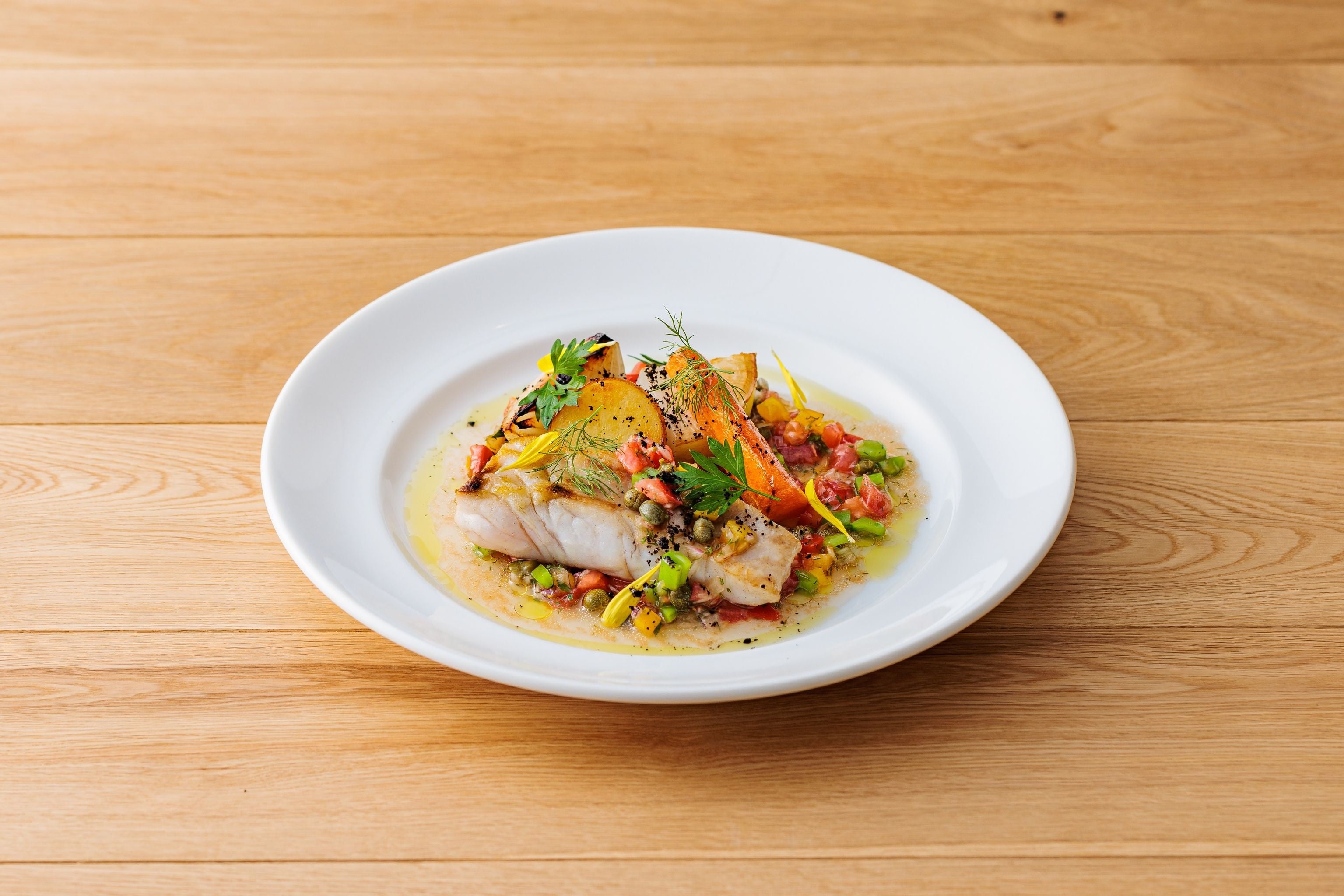 和歌山県すさみ町産の新鮮でクセのないシイラをしっとりと焼き上げ、ミントの香る爽やかなラヴィゴットソースを合わせました。
