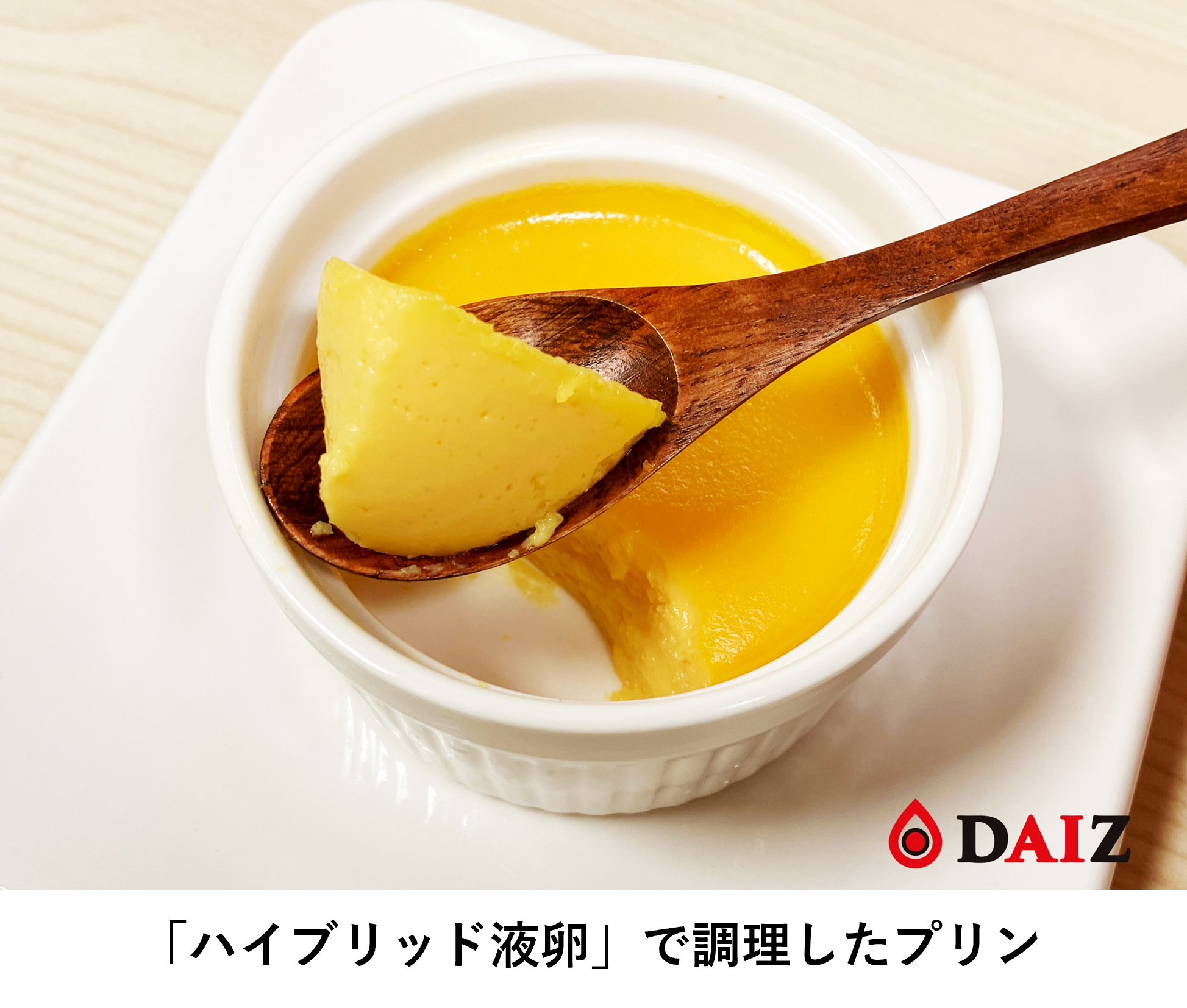 動物性たんぱく質の分子構造に近づけた植物性たんぱく質を用いることで鶏卵のゲル強度・ゲル弾力を再現し、鶏卵(液卵)と同じ温度、時間で熱凝固する。