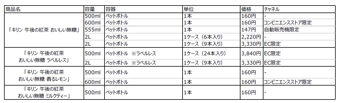 1.商品名 「キリン 午後の紅茶 おいしい無糖」