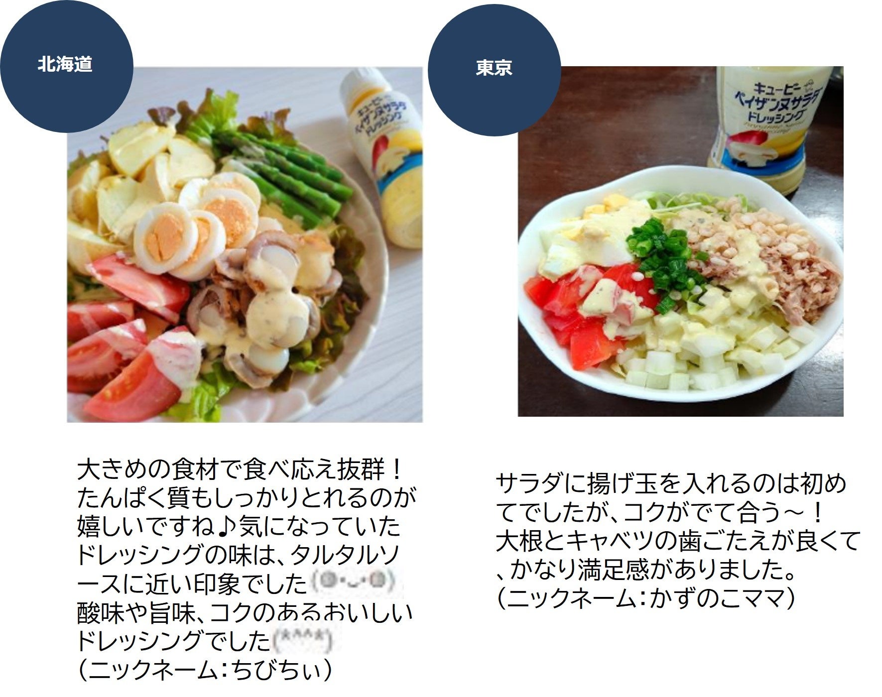 約2万人が登録するキユーピーのコミュニティサイト「おはなしダイニング」で実施した、「作ってたのしもう!ご当地ペイザンヌサラダ」キャンペーンには、多くの方に参加いただき、おいしそうなご当地ペイザンヌサラダの投稿が多数集まりました。