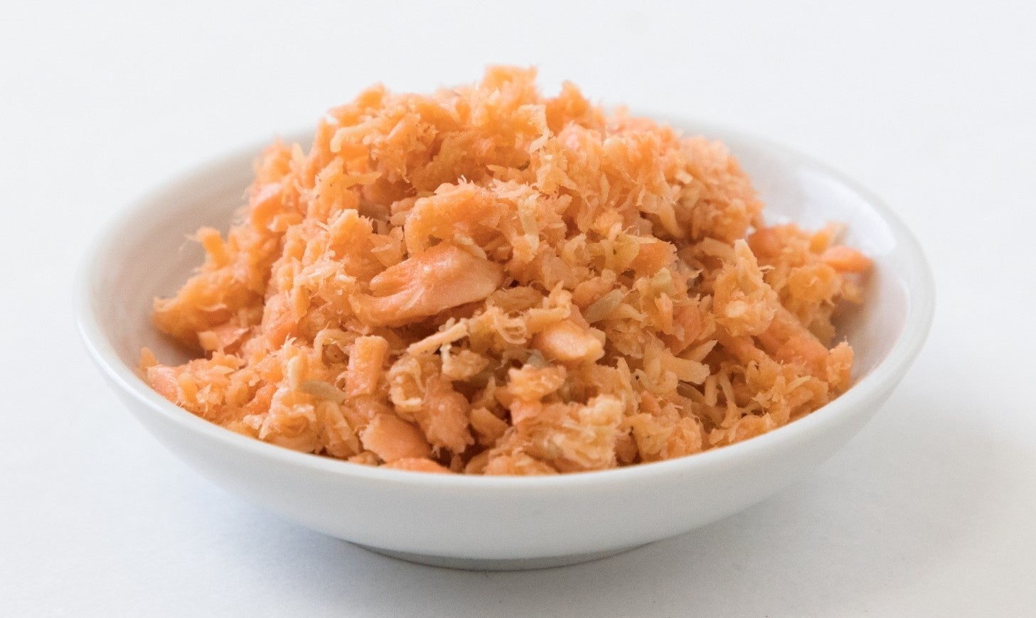 鮭フレークに約35%ブレンドし、製品化したものです。この試行錯誤の上に辿り着いた35%という